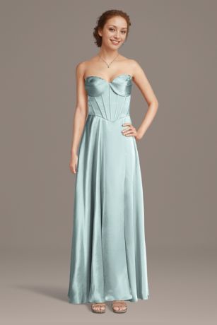 Celebrate DB Studio Satin Bow Bodice Corset A-Line Dress in Ballet Size: 1X David's Bridal