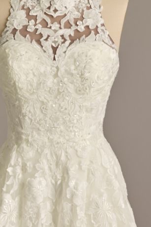 Oleg Cassini High Neck Lace Applique Tulle Wedding Dress in White Size: 28W David's Bridal