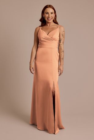 Galina Signature Charmeuse Draped Strappy Dress in Terracotta Size: 20 David's Bridal